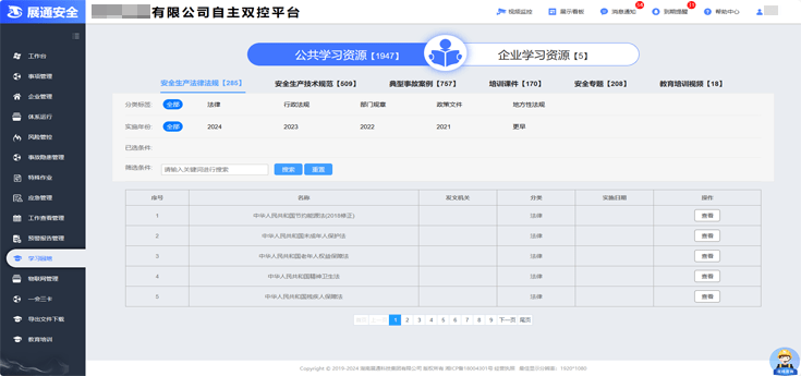平臺配置法律法規(guī)、技術(shù)規(guī)范、典型事故案例、安全專題、培訓(xùn)課件等多個維度學(xué)習(xí)資料,并定期更新。企業(yè)可根據(jù)需要自主下載,也可上傳本單位學(xué)習(xí)資料,提高安全管理專業(yè)知識與技能水平。