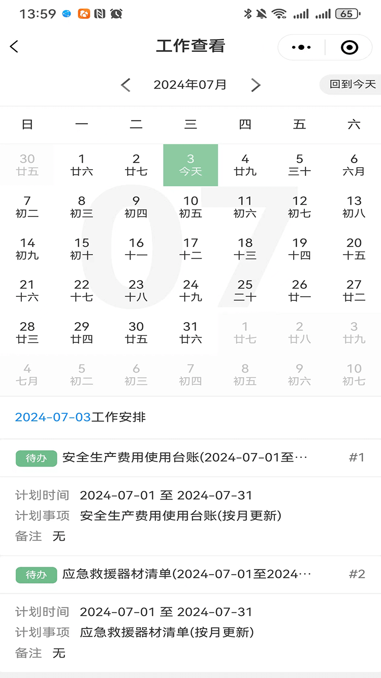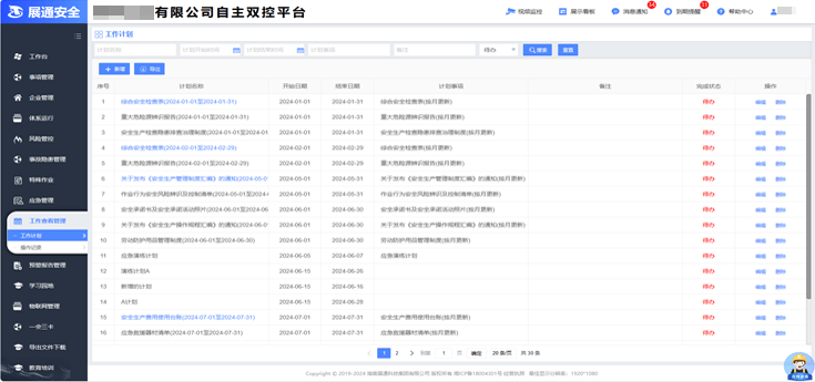 可根據(jù)需要及規(guī)則設(shè)定按月建立安全工作計劃,為安全管理提供便捷的管理工具。