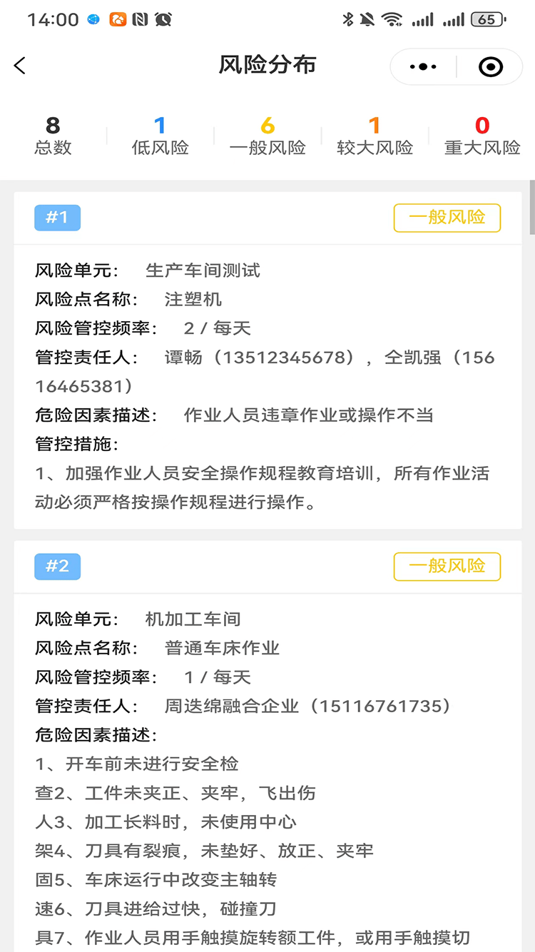 風(fēng)險分級管控,對應(yīng)管控層級、管控頻次、管控責(zé)任人、管控措施等一目了然,責(zé)任落實到人。