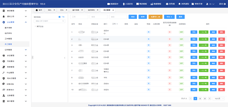 通過對組織構(gòu)架的靈活配置、人員責(zé)、權(quán)、利的劃分、分析及推送,建立多層級“一盤棋”管理,多維度齊抓共管,進(jìn)一步壓實(shí)各級、各部門、各層級人員的安全生產(chǎn)責(zé)任,減少安全部門上傳下達(dá)、部門間協(xié)調(diào)的壓力,將安全生產(chǎn)責(zé)任制的落實(shí)真實(shí)盡顯。