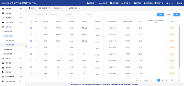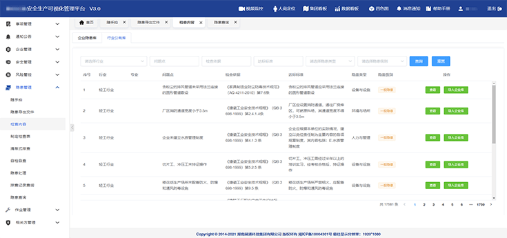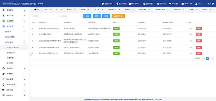 構(gòu)建安全投入(計劃及費(fèi)用)、各類安全會議、制度化建設(shè)(法律法規(guī)、合規(guī)性評價、規(guī)章制度、操作規(guī)程等)模塊內(nèi)容的臺賬,便于實(shí)時查詢與調(diào)取。
