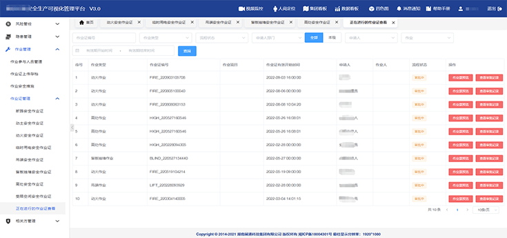 制定標(biāo)準(zhǔn)的特殊作業(yè)線上流程,節(jié)省線下審批時間,作業(yè)環(huán)節(jié)可追溯,支持在線打印作業(yè)證,實(shí)現(xiàn)特殊作業(yè)數(shù)字化管理。